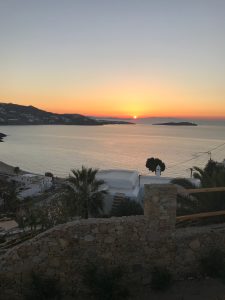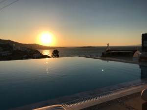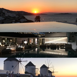 Den ersten Abend verbringen wir im besten Hotel von Mykonos im Bill&Coo zum Sunset Apero und Dinner. Das Restaurant ist absolut empfehlenswert. Das Essen ist lecker und der Service sehr gut und aufmerksam, der Preis für die tolle Lage und wunderschöne Aussicht ok. Unbedingt bereits zum Sunset in die Lounge kommen.