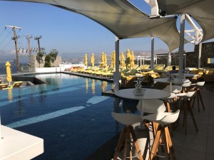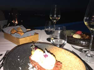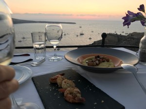 Am Abend gehts in das Restaurant Fly Away im Hotel WestEastSuites. Dies ist in Gehdistanz zu erreichen. Wir sitzen exklusiv an einem von insgesamt 5-6 kleinen Tischen und genialem Ausblick auf das Meer und den Sunset. Der Service ist super, das Essen haben wir uns für den Preis besser vorgestellt, der Fisch war zB zu trocken. Die Weinauswahl „Pure“ aus Santorini war toll!!! Der Barkeeper und der Whisky Sour, spitzenklasse!!!
