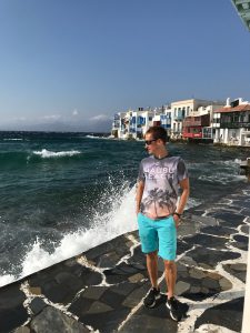 Der letzte Tag ist sehr windig, wir fahren zum Elia Beach, der sehr schön und etwas weitläufiger ist als der Ornos oder Psarou Beach mit Liegen und Schirmen zu mieten für 40 EUR (ein Set) und netten Restaurants zum Lunch. Eine Bucht mit türkisfarbenem Wasser, toll zum Schwimmen. Nachmittags bummeln wir durch die schönen Gässchen der Altstadt (Chora) und Little Venice mit netten Geschäften, Galerien und kleinen Tavernen.