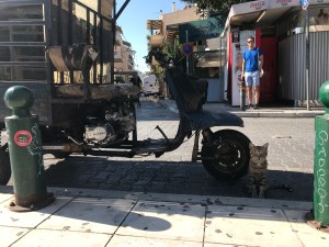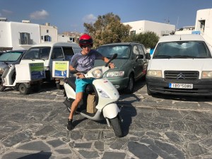Heute ist und Beach angesagt, nämlich der Pool des Kyma Hotels (der hat uns von den 3 am besten gefallen) und am Ornos Beach. Dort fahren wir mit einen Roller hin, den wir für 2 Tage ausleihen für angeblich 40 EUR, diese wurden uns jedoch unverschämterweise zu Beginn und bei Abgabe der Roller nochmals abkassiert. Generell muss man sagen, dass man sowohl auf Santorini als auch auf Mykonos aufpassen muss nicht „übers Ohr gehauen zu werden“ mit Taxipreisen, Restaurantpreisen usw.