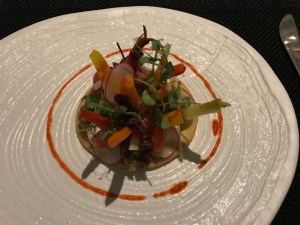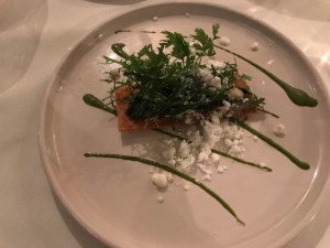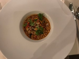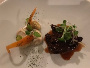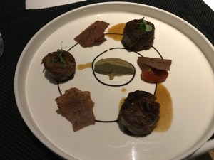 Am ersten Abend gehen wir zu Fuss ins Restaurant Aleria. Hier stimmt einfach alles – tolles Ambiente (sehr schöner Garten), fantastisches Essen, sehr nettes und freundliches Personal. Preis-/Leistungsverhältnis absolut in Ordnung. Wir hatten das 5-Gänge-Tasting-Menu (55 €). Dazu ein Amuse Bouche und ein Pre Dessert und leckeres selbstgebackenes Brot. Ein abendfüllendes Programm. Für uns ein Anwärter auf einen Michelin Stern. Tipp: unbedingt ein Tisch im Garten reservieren!