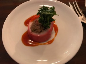 Danach gehen wir zu Fuss durch die Altstadt in das Restaurant Moritz, was sich im 5-Sternehotel Suitess befindet. Es waren lediglich 2 Tische besetzt, was uns komisch vorkam für Freitag Abend. Das Essen war jedoch ganz gut, modern und saisonal, aber das Ambiente eines klassischen Hotelrestaurants. Für uns daher nicht unbedingt das Richtige.