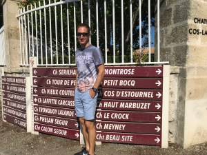 Wir fahren weiter nach Bordeaux und vertreiben den Vormittag im Medoc entlang der Route des Châteaux. Dabei passieren wir ein berühmtes Gut nach dem anderen: etwa Palmer, Ducru-Beaucaillou, Latour, Pichon-Longueville, Pichot Baron, Cos d’Estournel und Lafite-Rothschild.