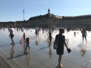 Bordeaux, die Metropole im Herzen der berühmten Weinregion. Vor ein paar Jahren wurde Bourdeaux ein Facelifting verordnet. Statt der mausgrauen Optik der heruntergekommen Altstadtviertel strahlt es heute etwas Heiteres, Beschwingtes aus. Tolle alte Gebäude und pittoreske Plätze treffen auf eine junge, spritzige Dynamik. Wir schlendern die grosse Einkaufsstrasse entlang zum Place de la Bourse. Das neoklassische Ensemble, das mittlerweile UNESCO Kulturerbe ist, begründet Bordeaux‘ Ruf als die zweitschönste Stadt Frankreich – nach Paris versteht sich. Davor befindet sich der «Miroir d’Eau», eine riesige, millimeterdünne Wasserfläche, in der sich die harmonischen Fassaden spiegeln. Bestes Fotomotiv der Stadt!