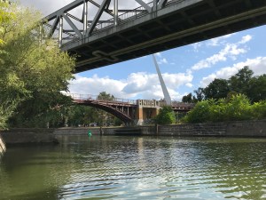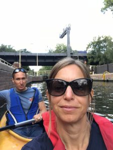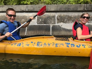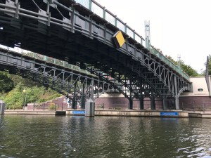 Wir paddeln 3 Stunden den Landwehrkanal entlang bis zum Paul Linke Ufer in Kreuzberg.
