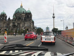 Was uns bei unserem letzten Berlintrip auch super gefallen hat ist die Trabie Safarie. Hier fährt man selbst einen Trabant in einer Kolonne von 4-6 Autos mit Stadtführung über Autofunk durch Berlin. Hat Spass gemacht.