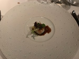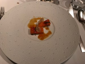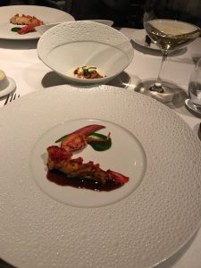 ..nach einer Stipvisite des Time Square am Abend geht es zum nächsten Sternefressen zu Eric Ripert. Ebenfalls eines der besten 3 Sterne Restaurants in New York, das Le Bernadine. (https://www.le-bernardin.com) Diesmal begleitet uns unser Freund und Architekt Patrick. Wir entscheiden uns für das grosse „Tasting Menü“ in 8 Gängen für 225 Dollar ohne TAX und Tip. Höhepunkte des Menüs sind die Langustinen und der Hummer, handwerklich perfekt und französisch klassisch zubereitet. Die Seezunge und der Seeteufel wurden etwas zu lange gegart, das Endergebnis mit den tollen Saucen aber dennoch ansprechend. Das Pre-Dessert mit geräuchertem Joghurt konnte überzeugen und war besser als das Hauptdessert.
