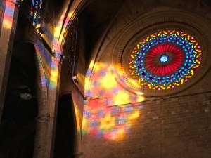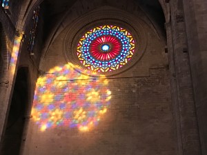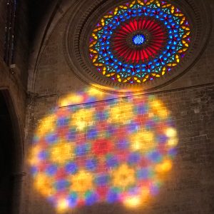 Jedes Jahr am 2. Februar (Lichtmess) und 11. November ist in der Kathedrale ein faszinierendes Lichtspiel zu sehen: gegen 8 Uhr entsteht eine “Licht-Acht”. Die aufgehende Sonne projiziert eine zweite Rosette genau unter die Rosette des Eingangsportals. Nicht umsonst hat die Kathedrale den Beinamen „Kathedrale des Lichts“. Es ist ein Wunder aus Farbe und Licht, das sich zweimal pro Jahr in der Kathedrale von Palma ereignet. Dann fällt die Morgensonne genau im richtigen Winkel durch die große Rosette an der Ostfront der Kathedrale, so dass ihre 1236 bunten Glasteile genau auf der gegenüberliegenden Wand wie im Original zu sehen sind.Die Sonne scheint an diesen Tagen in einem bestimmten Winkel durch das runde Fenster auf der Hauptfassade und spiegelt sich unter dem runden Fenster auf der gegenüberliegenden Seite, sodass eine Acht entsteht.