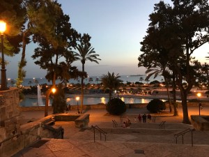 Was uns auch immer wieder gefällt, abends spazieren zu gehen im Sonnenuntergangslicht durch die Gassen mit den idyllisch beleuchteten sandsteinfarbenen Häuserfassaden bis runter zum Meer. Oft gönnen wir uns einen Apero auf einer schönen Dachterrasse wie zB im Hotel Sant Francesc oder im relativ neu eröffneten Hotel Es Princep und gehn dann weiter zum Dinner.