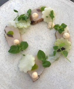 Der krasseste «East meets West»-Gang: Terrine von der Entenleber, sorgfältig zubereitet wie es sich für einen «Traube Tonbach»-Schüler gehört. Dazu Kräuterseitlinge, Algen und eine ziemlich freche Vinaigrette mit Ponzu, süssem Reisessig, Weisswein und Soja. Die Poulade im Hauptgrund ist nicht wahnsinnig spektakulär und auch die Desserts sind nicht ganz so elaboriert, dafür lässt die Weinkarte für Liebhaber kaum Wünsche offen.