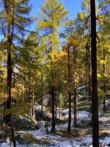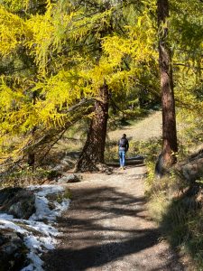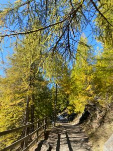 Am kommenden Vormittag starten wir nach einem Bummel durch das schöne Dorf die Herbstwanderung Richtung Gornerschlucht, Blatten, Matterhorntrail vorbei an goldgelb gefärbten Lärchen und Birken vor strahlend blauem Himmel. Einfach nur genial!