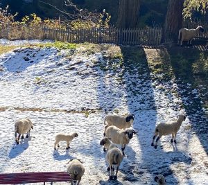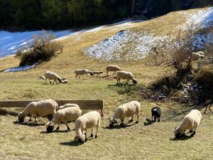 Den Lunch nehmen wir auf der Sonnenterrasse im Bergrestaurant Blatten. Auf dem Rückweg besuchen wir den Ricola-Kräutergarten und beobachten die Schwarznasenschafe mit Nachwuchs.