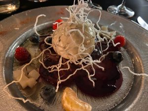 Nach einer kleinen Runde im Wellness-Bereich des Hotels machen wir uns chic für das Dinner im hauseigenen Sternerestaurant Omnia. Hauke Pohl hat im vergangenen Jahr den Posten des Executive Chefs übernommen, mit dem Plan, den Stern zurück ins Haus zu holen, der im Jahr zuvor abhanden gekommen war. Gesagt, getan. Der Michelin hat das The Omnia nach zwölf Monaten Abstinenz wieder mit einem Macaron ausgezeichnet. Dass Pohl das Rüstzeug mitbringt, um einem Restaurant zu höchsten Weihen zu verhelfen, zeigen Stationen in der Traube Tonbach oder im zweifach besternten Ophelia am Bodensee. Der Chef pflegt eine sehr feingliedrige, teilweise geradezu zurückhaltende, moderne Küche, die jedoch mit dem Herz ganz klar in der Klassik verankert ist. Das heisst nicht, dass man gepflegte Langeweile zelebriert. Ganz im Gegenteil. Die Gerichte zeigen sowohl Mut beim Kombinieren als auch eine eigenständige Handschrift. Harmonie, Subtilität, Fokus aufs Produkt, das zeichnet die Gerichte des jungen Franken aus, geradezu ein Spiegelbild zur gradlinigen und puren Architektur des Hauses. Ein Extralob gilt der gesamten Belegschaft und dem Manager, die sehr nahe am Gast sind, ohne dabei aufdringlich zu sein und strahlen dabei eine natürlich-herzliche Gastfreundschaft aus, die man auch in den besten und teuersten Häusern dieser Welt nur sehr selten erlebt. Weiter so!