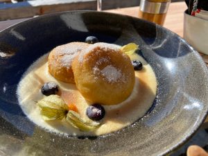 Am letzten Morgen besuchen wir nochmal die Schaf-Familie und dann gehts mit der Sunnegga Bahn hoch hinauf und nach einem kurzen Spaziergang zu Fuss Richtung Findeln zur Chez Vrony. Hier wird man jedes Jahr aufs Neue sehr ehrlich von den Gastgebern Vrony und Max Cotting begrüsst. Unvergessliche Aussicht, kombiniert mit genialem Essen, super Service und gemütlich coolem Alpenchic – was will man mehr! Toll, dass die 2 ab Dezember noch ein weiteres Bergrestaurant, das Paradies in Findeln übernehmen.